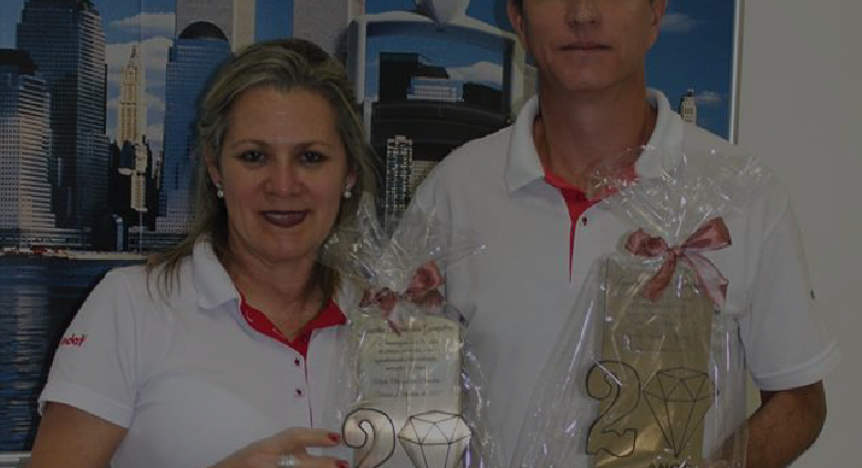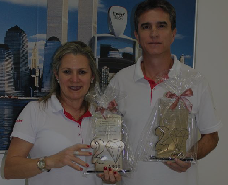 Na ocasião, os senhores Kees Uppenkamp e Reinhard Kulterer, homenagearam os colaboradores Leandro Gonçalves e Jucelia Fernandes pelos seus 20 anos de dedicação a Globo Carimbos.