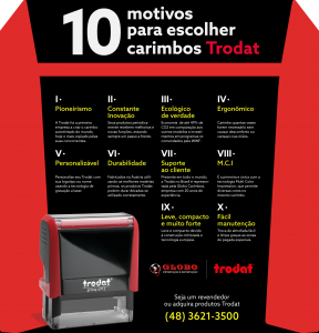 Presente em todo o mundo, a Trodat no Brasil é representada pela Globo Carimbos, empresa com 20 anos de experiência.