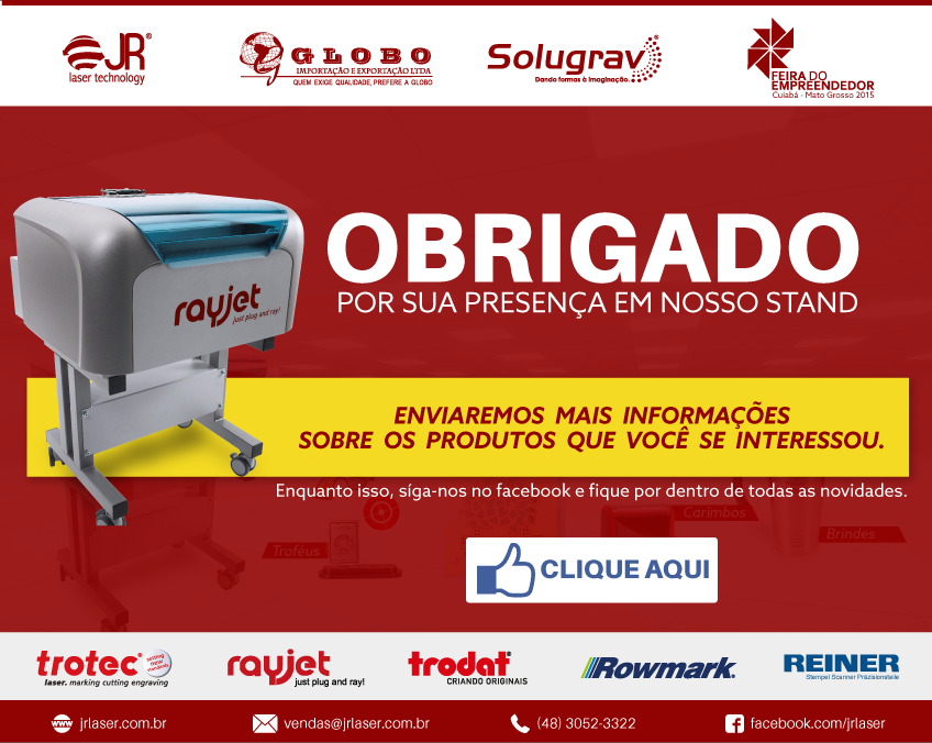 A Globo Exportação e suas parceiras JR Laser e Solugrav, estiveram presentes mostrando todas as possibilidades dos produtos Trodat/Trotec.